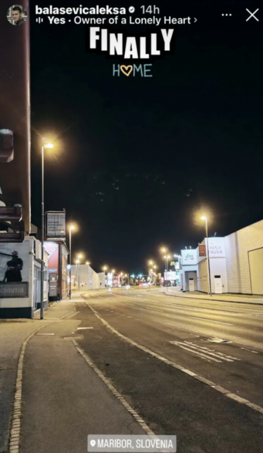 Međutim, Aleksa je imao potpuno drugi plan za ćerkicu Veru i suprugu Nikolinu. Ova odluka sigurno je posebno iznenadila njegovu majku Oliveru, ali ona je svesna da njen sin želi da gradi svoj put. Naime, ako je verovati njegovim objavama na Instagramu, Aleksa se sa porodicom preselio u Sloveniju. Ova pretpostavka dolazi nakon što je Đoletov naslednik slikao ulice Maribora, uz natpis „Konačno kod kuće“.