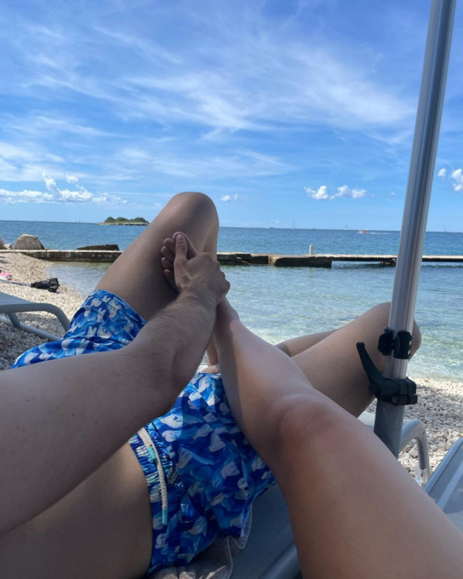 Lice, doduše, nije pokazao, ali na nekim slikama vidimo kako se nežno drže za ruke dok se opuštaju pored mora i šetaju obalom u večernjim satima. Jedan prizor je posebno interesantan jer pokazuje njegova široka leđa... Dovoljno da pripadnice lepšeg pola zaključe da je zgodan.