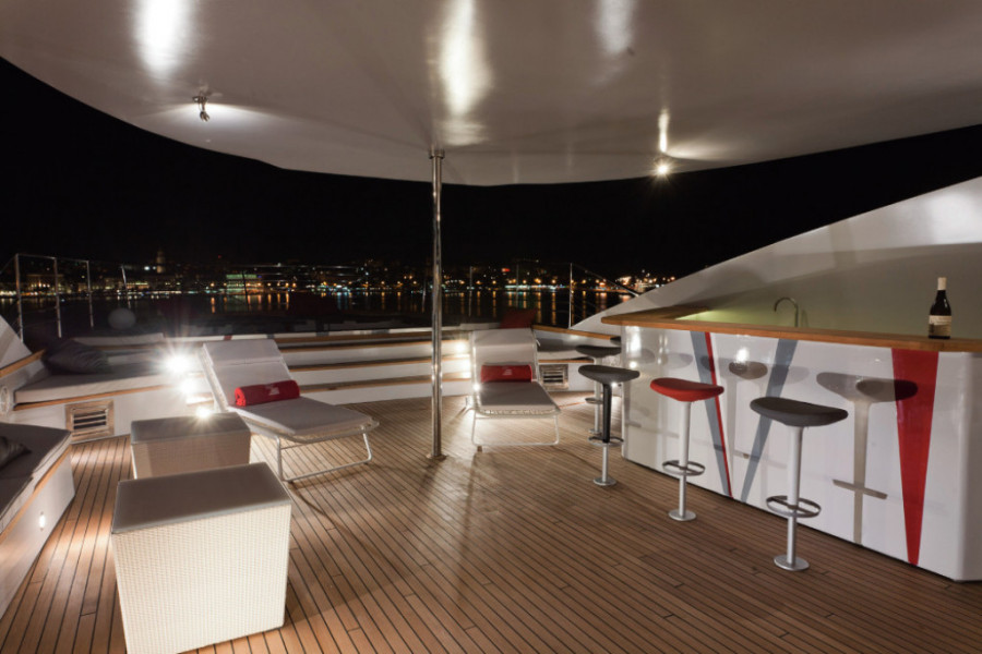 Već nazivi apartmana za goste, opremljeni, između ostalog, i „royal“ krevetima, govore kakve se bajke kriju u njima: “Chic”, “Nature”, “Print”, “Mondrian”. U potpalublju su smeštene kabine za posadu, na gornjoj palubi nalaze se porodični apartmani, dok najviši “sprat” predstavlja epicentar letnjih zbivanja, sa barom i bazenom dugačkim tri i po metra. Brod je predviđen za 12 osoba.
