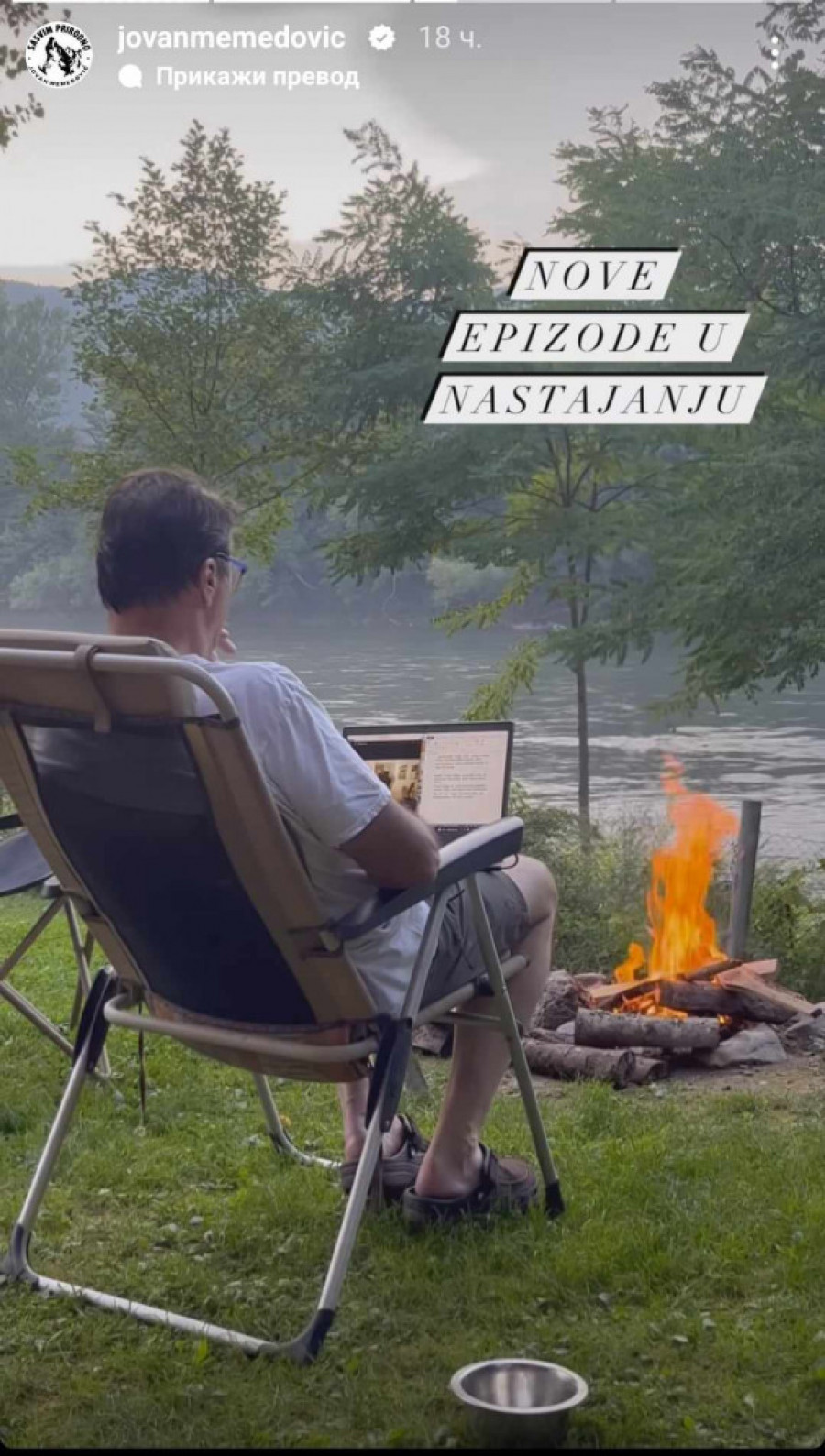 Naime, šarmantni voditelj je objavio snimak na kome vidimo njegovo novo radno okruženje. Drina, tiha vatra, drvena stolica i laptop, čini se da Memedović baš uživa u svom poslu i ne mari za ono što se desilo pre mesec dana.