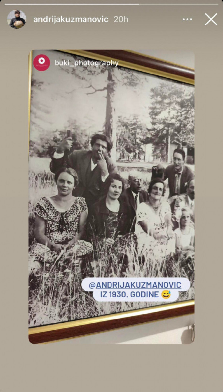 Andrija se oglasio na Instagramu kako bi podelio staru fotografiju iz 1930. godine. U pitanju je veliki portret neimenovane porodice, uramljen u nečijem stanu ili muzeju. Na slici je osam osoba, a jedan muškarac toliko neodoljivo podseća na glumca, da nije isključeno da su rod.