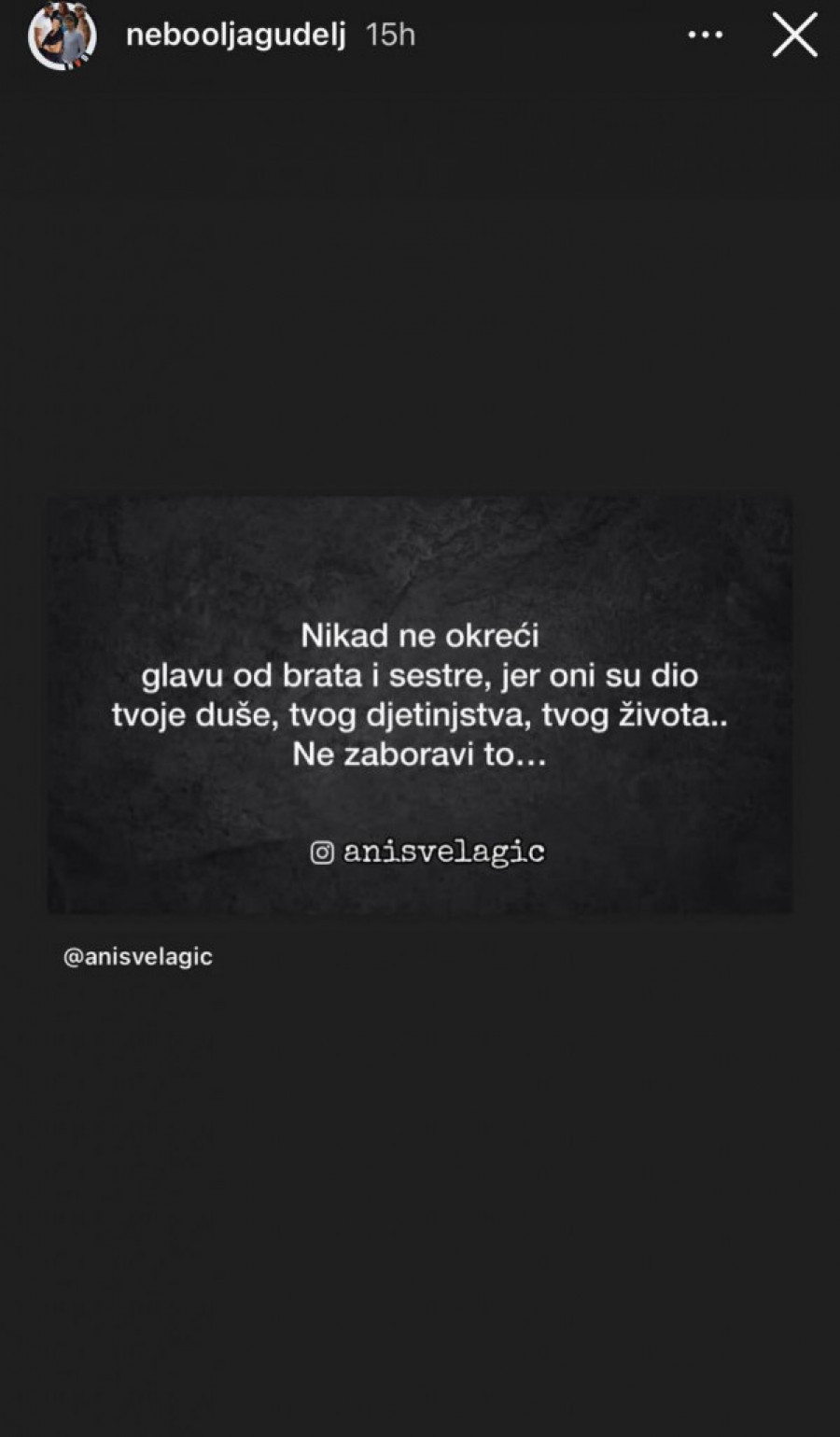 Nikad ne okreći glavu od brata i sestre, jer su oni deo tvoje duše, tvog detinjstva, tvog života... ne zaboravi to... – piše u objavi Olivere Gudelj.