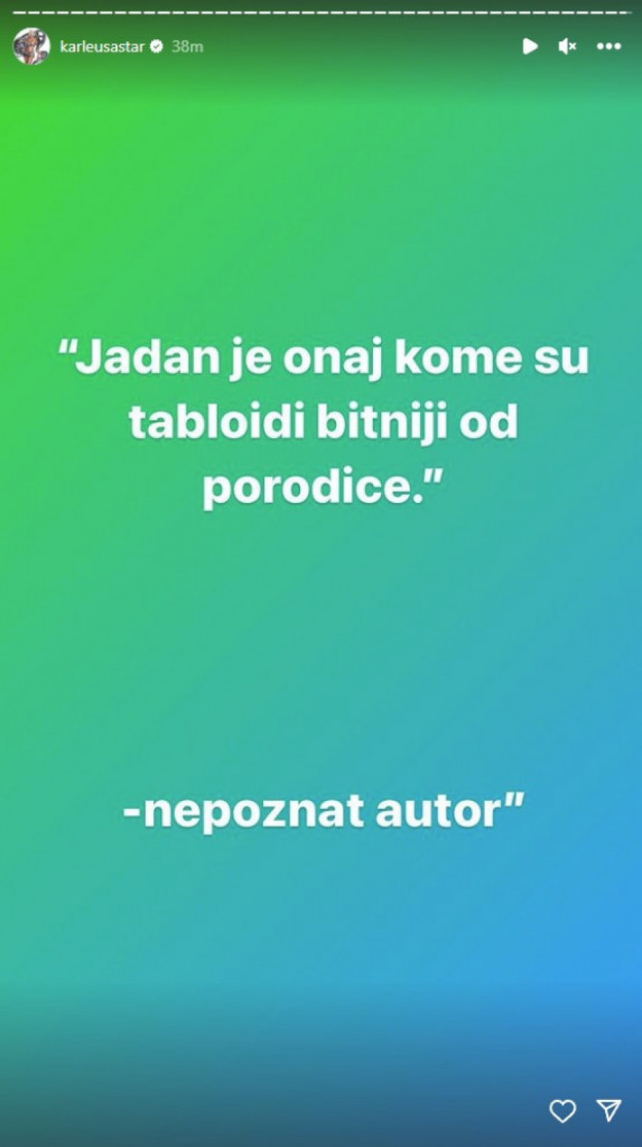 Nakon što se Jelena Karleuša u velikom intervjuu za Story u svom stilu dotakla odnosa sa suprugom Duškom Tošićem, nekadašnji fudbaler objavio je poruku na Instagramu koju su mnogi protumačili kao svojevrsni odgovor.