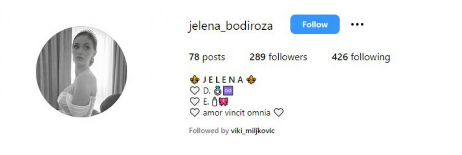 Sudeći po Jeleninom opisu na Instagramu, ona je u međuvremenu postala majka – pored slova „E“, na njenom profilu stoji belo srce i flašica za bebe.