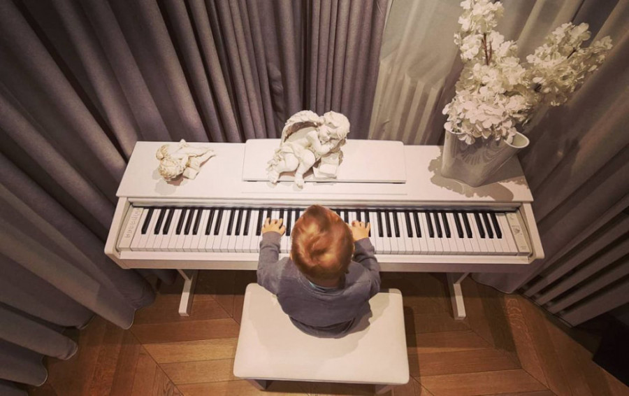 Centralno mesto u dnevnoj sobi zauzima beli klavir, na kom je Filip možda napisao najlepše balade za svoju suprugu i njene koleginice. A očigledno i mali Aleksandar voli da sedne za ovaj instrument.