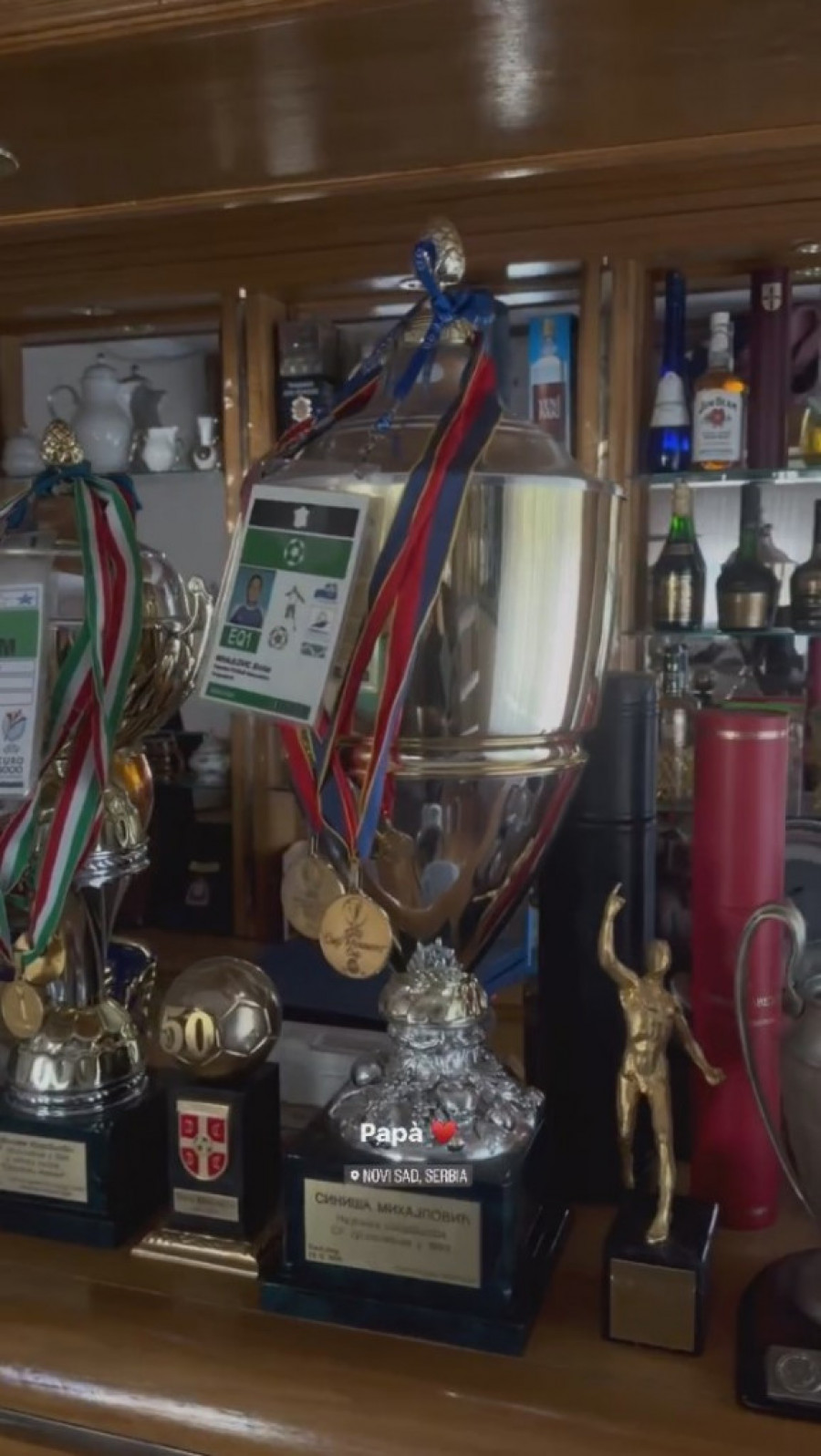 Pehari, medalje i ostale memorabilije krase dom Mihajlovića u Sremskoj Kamenici, i nemoguće ih je sve udenuti u jedan kadar. Na slici je Viktorija napisala samo „tata”, na italijanskom, i kao uvek dodala srce. Jedna reč, dovoljna da kaže sve.