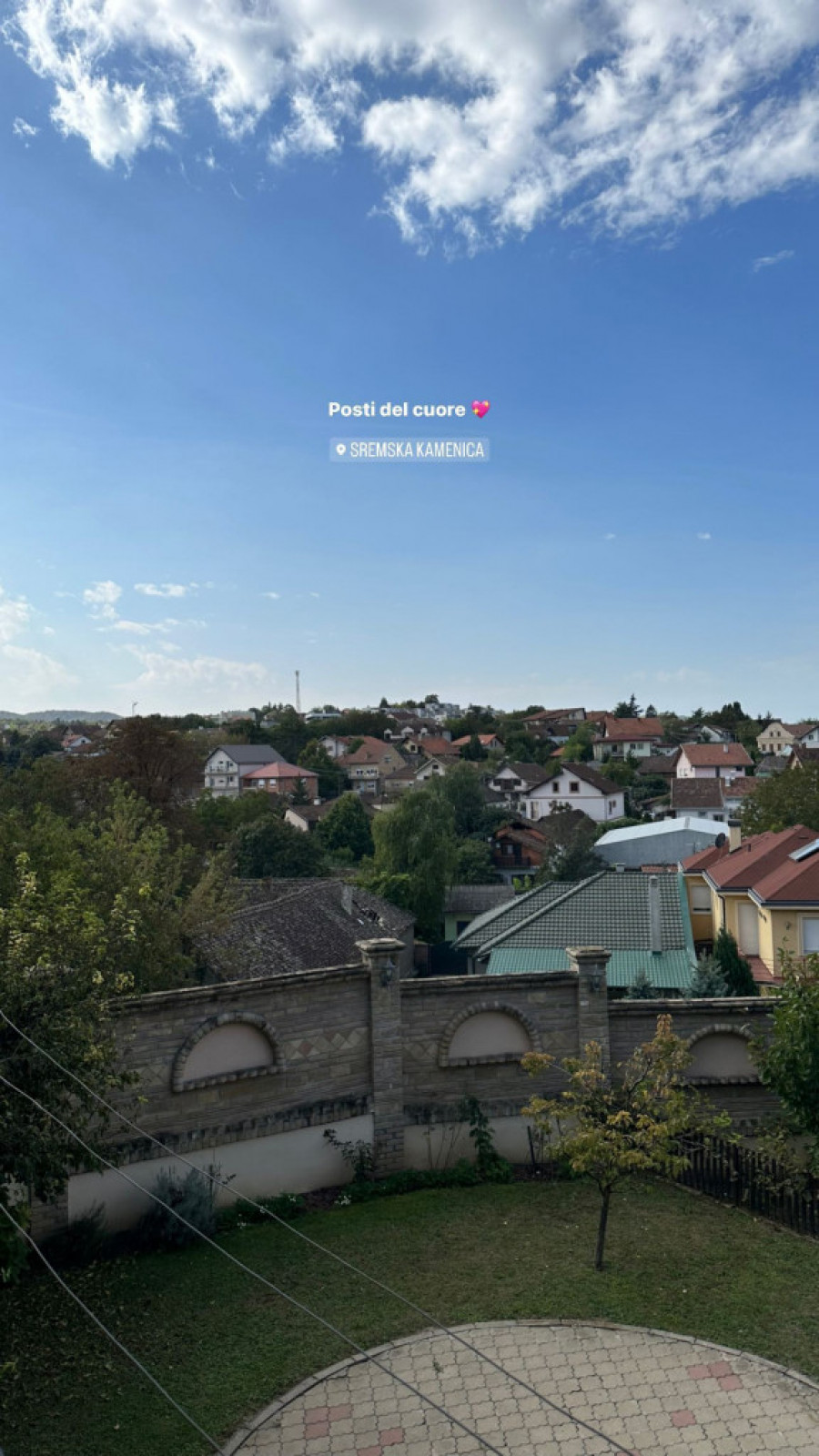 Pogled iz dvorišta je božanstven, što je pokazala i Virdžinija na svom Instagramu. Uz fotografiju panorame i naziv lokacije napisala je „mesto u srcu”.