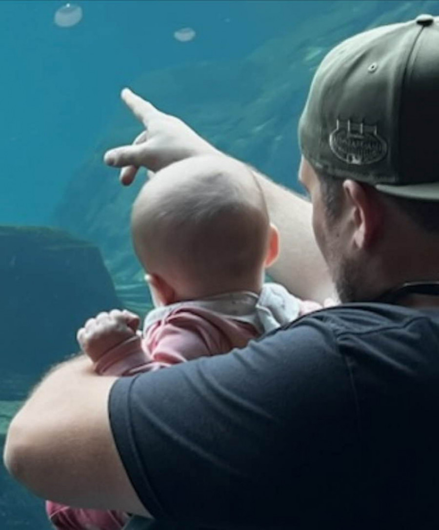 Da uživa u ulozi bake potvrdila je i najnovijom fotografijom. Devin, ugledni lekar koji sa majkom živi u Americi, nežno drži ćerku i pokazuje joj šta se dešava u džinovskom akvarijumu.