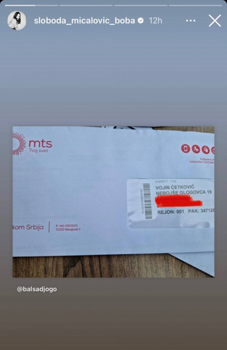 Sloboda je na svom Instagram profilu pokazala Vojinov račun za telefon, gde ispod njegovog imena stoji i ime ulice koje nosi naziv po Glogovcu, na oduševljenje mnogih.