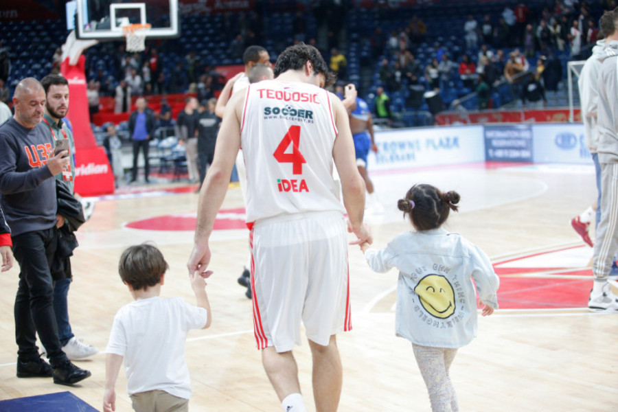 Miloš Teodosić juče je u Areni imao najlepšu podršku dosad, jer su za njega s tribina navijali supruga Jelisaveta Orašanin i njihova deca Bogdan i Petra.
