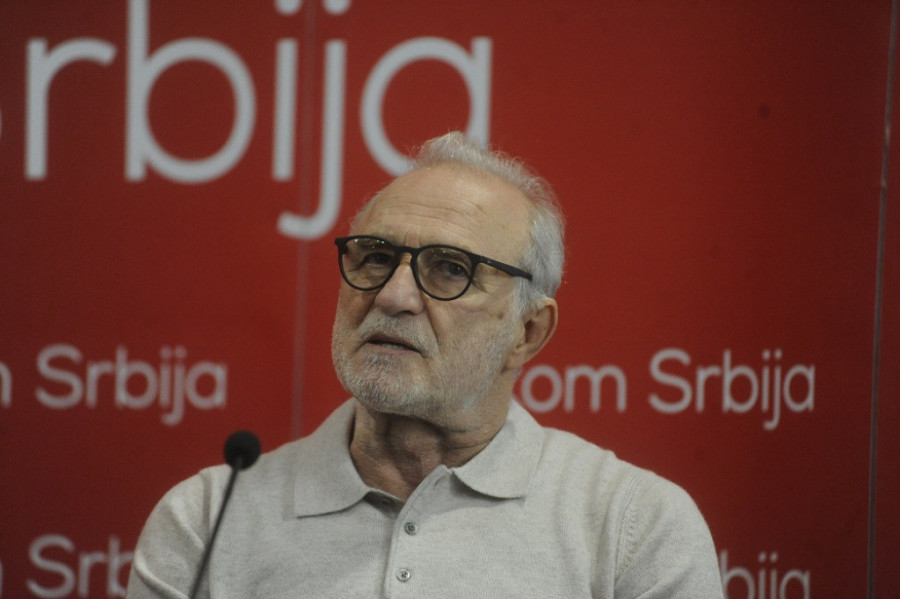 Danica je bila sva u crnom, sedela je u društvu našeg omiljenog glumca Zorana Cvijanovića (65), a pored je bio i sin Jovan Ristovski, a Lazar je sedeo sa drugim sinom Petrom koji je vodio konferenciju i koji je ujedno režirao seriju.