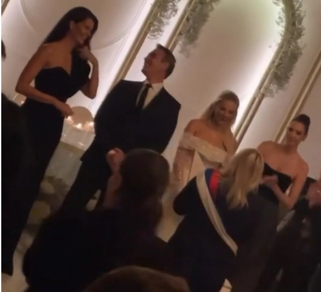 Slavlje je upriličeno u jednom restoranu, u krugu najbližih prijatelja, a kuma im je voditeljka Marija Kilibarda, koja je blistala u dugoj crnoj haljini, sa jednim golim ramenom.