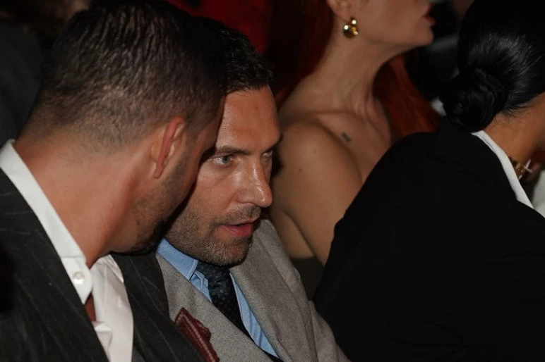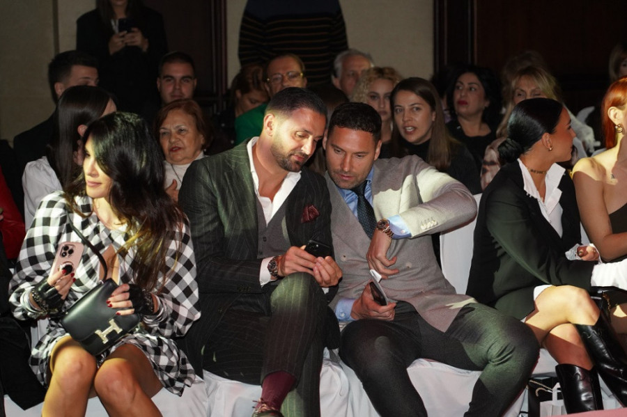 Bio je vidno raspoložen, a pred početak programa pridružio mu se prijatelj, pa su zajedno gledali reviju i ćaskali. Tik pored njega našle su se bivše učesnice „Survajvera”, ali i prelepa Ivana Korab koja je zasijala u crno-beloj haljini.
