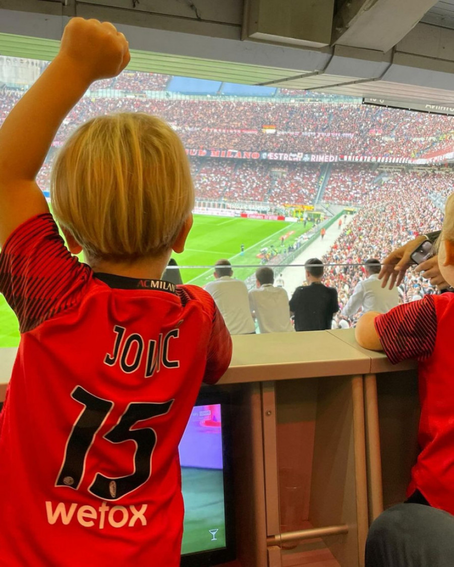 Atraktivna Sofija objavila je niz fotografija sa svojim naslednicima Aleksejem i Teodorom koji su u dresovima Milana pratili tatu sa tribina i navijali za njega.