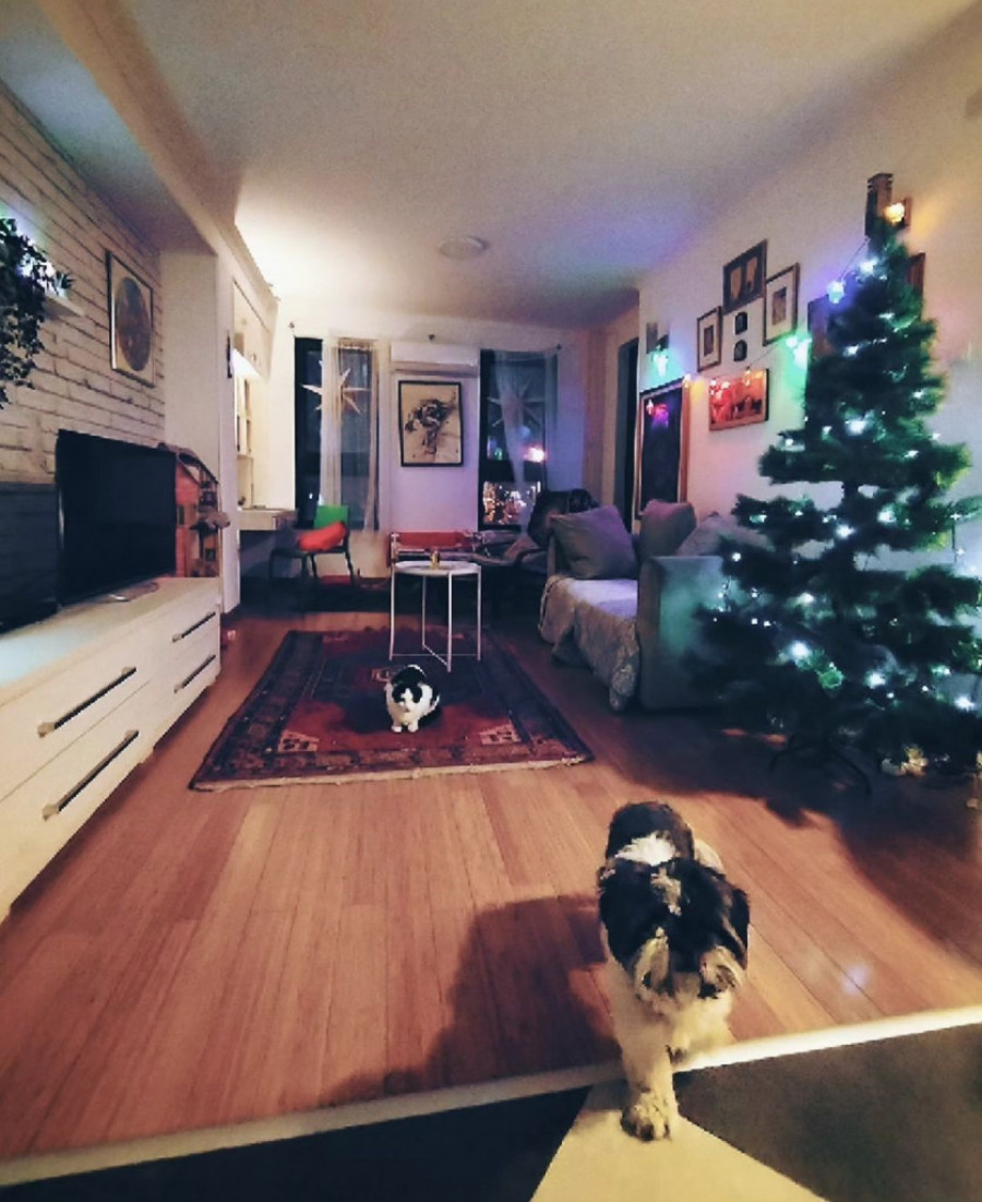 Mala Iskra, zajedno sa mamom, okitila je jelku svetlucavim lampicama, a ukrasne kuglice su došle kasnije jer Iskra u svom domu ima dve mačke koje izuzetno vole da se igraju okruglim stvarčicama.