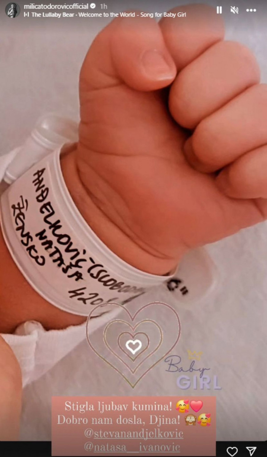 „Stigla ljubav kumina. Dobro nam došla, Đina“, napisala je Milica i tagovala svoje kumove, Stevana i njegovu ženu Natašu.