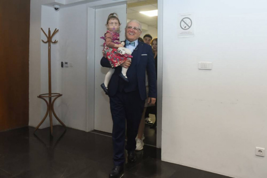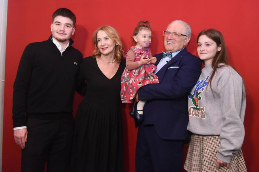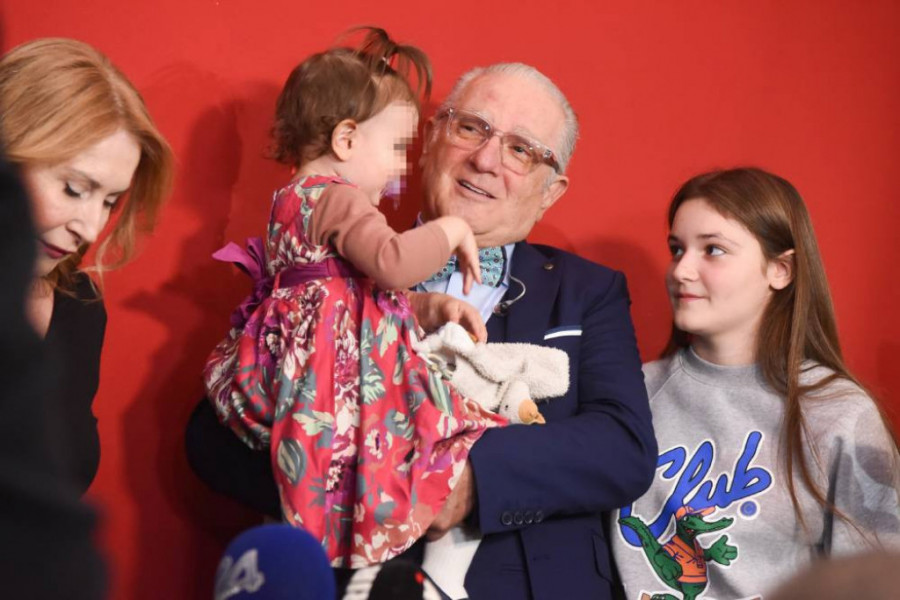 Sa suprugom Majom i decom pozirao je na crvenom tepihu a u naručju mu je bila najmlađa unuka, koju sve vreme nije ispuštao.