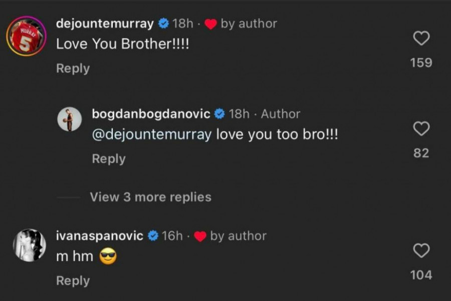 Srpska atletičarka je napisala "mhm" uz emodži sa naočarima na poslednju Bogdanovu objavu, u kojoj je košarkaš citirao reči jedne rep pesme koja govori o privlačenju dobre energije.