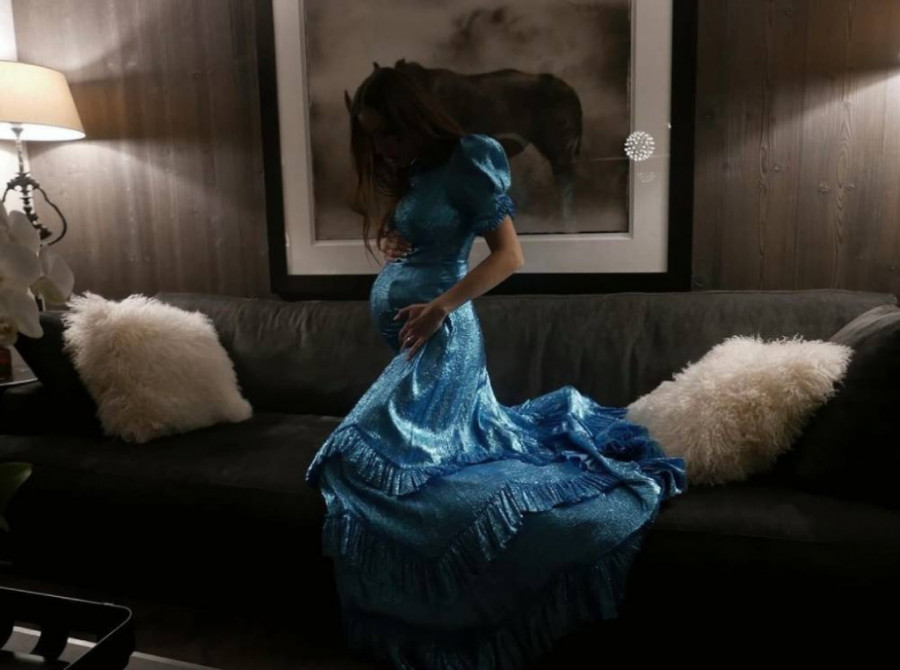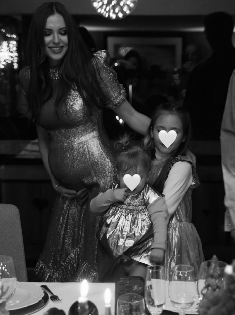 Anja je pozirala u glamuroznoj haljini u kojoj se video zaobljen stomačić, i na jednoj idiličnoj fotografiji pozira sa naslednicama.
