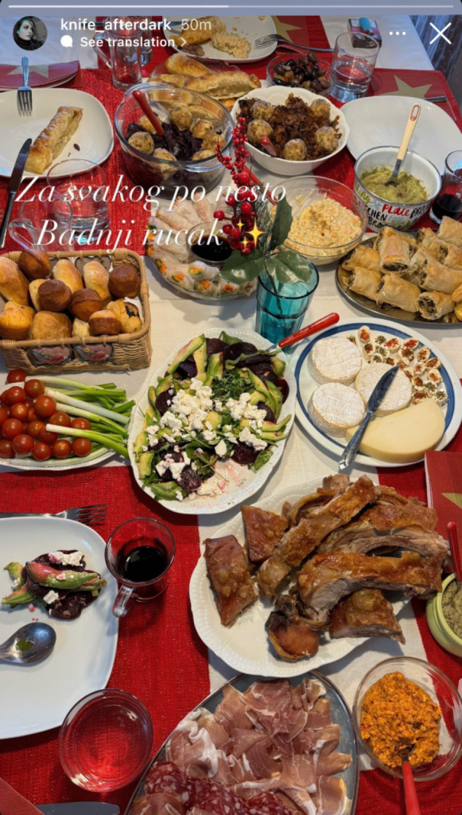 Među onima koji obeležavaju oba Božića je i Mina Sovtić, ćerka legendarne Anice Dobre. Mlada glumica pokazala je pratiocima na Instagramu kako je izgledao ručak za Badnji dan. Nije posan, već, kako je napisala u storiju, ima za svakog ponešto.