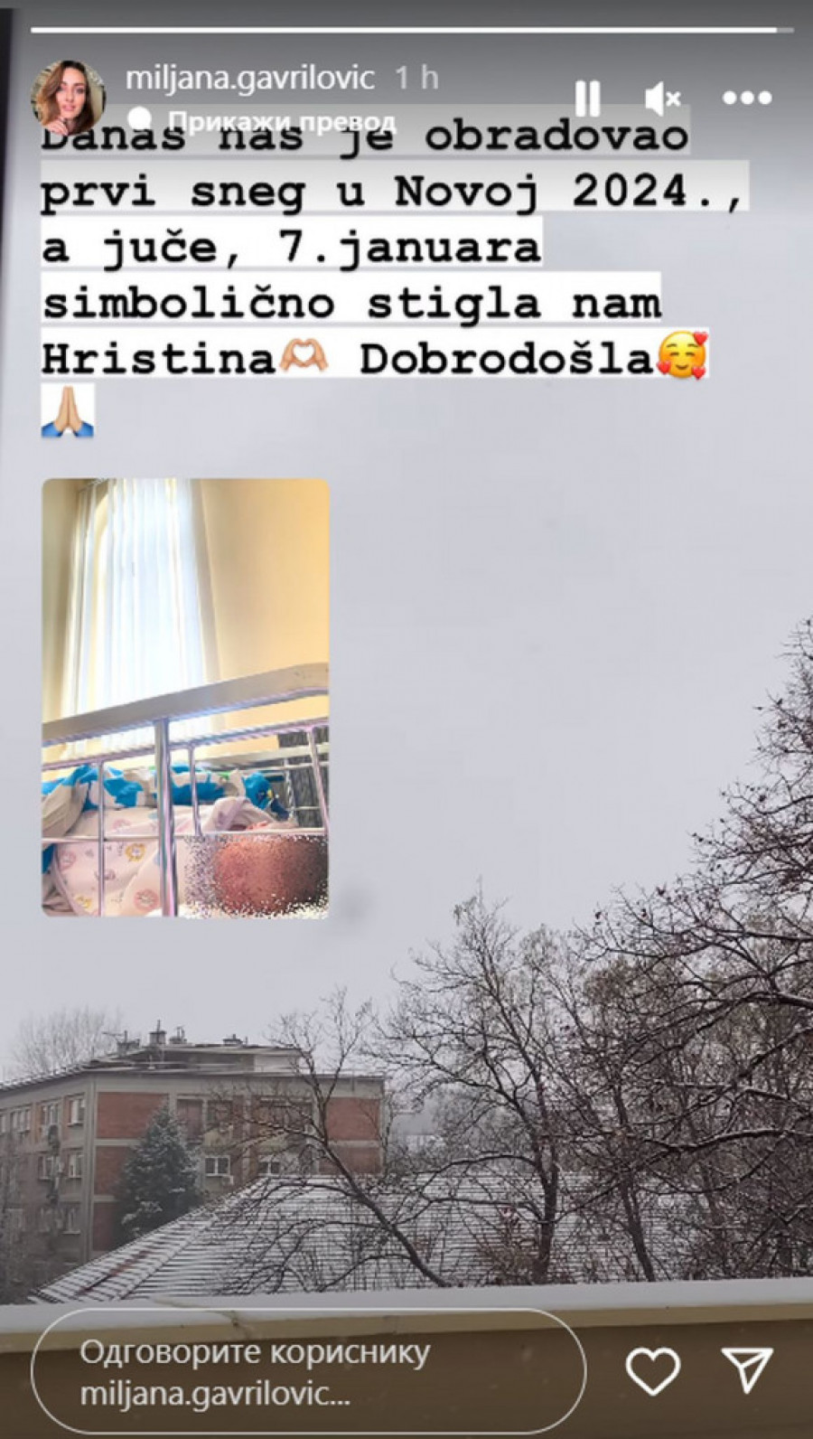 - Danas nas je obradovao prvi sneg u Novoj 2024. godini, a juče, 7. januara, simbolično nam je stigla Hristina. Dobrodošla - napisala je srećna majka.
