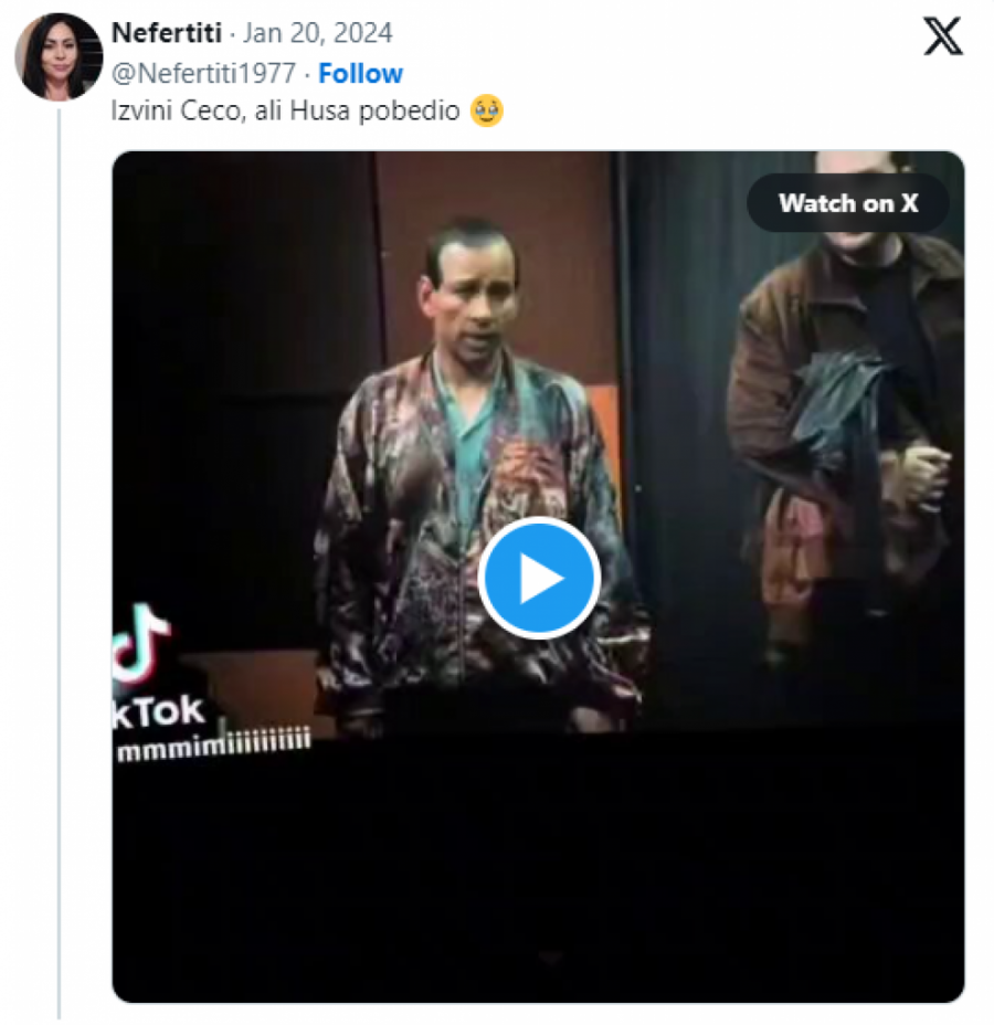 "Izvini, Ceco, ali Husa je pobedio", napisala je jedna korisnica društvene mreže "Iks" pored snimka scene u kojoj je Husa u potpunosti otelotvorio čuvenog Dorćolca.