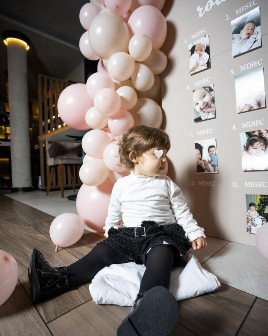 Prelepu dekoraciju činili su baloni pastelnih boja i plišane igračke, a pažnju je privlačio i pano sa dvanaest fotografija slavljenice koje su ilustrovale dvanaest meseci njenog života.