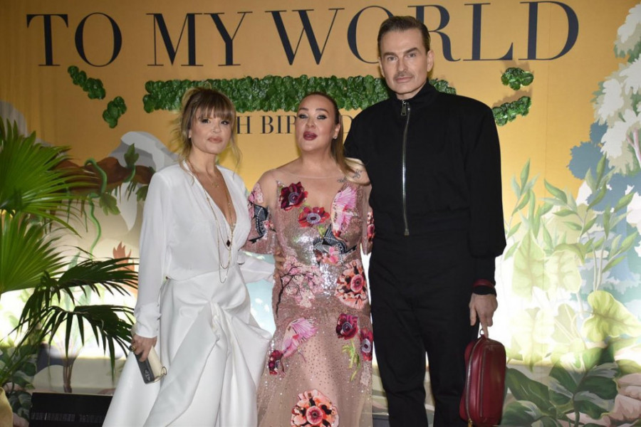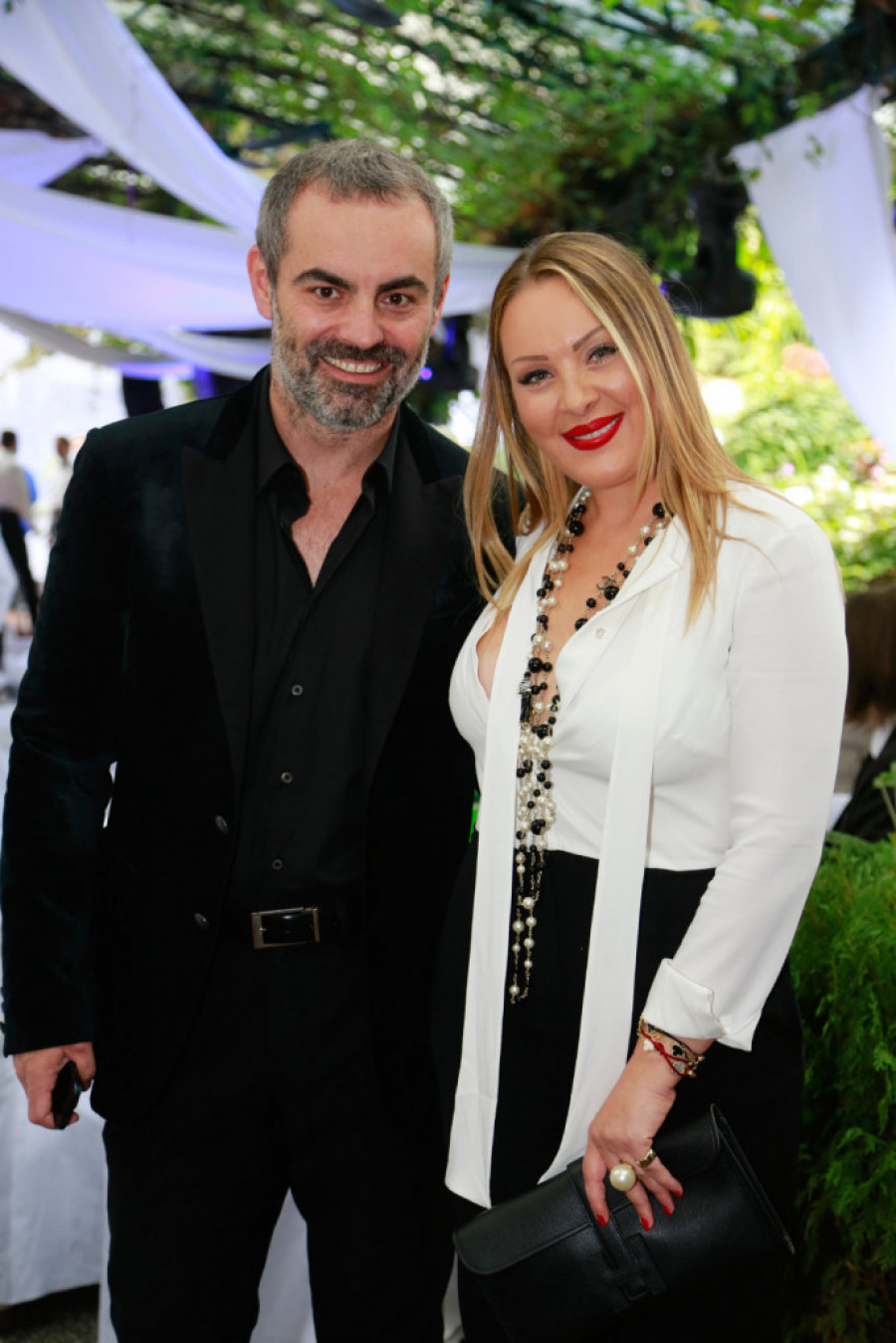 Slavljenica je nosila haljinu sa aplikacijama cveća i egzotičnih prica, verovatno neku "haute couture" kreaciju sa skupim potpisom. Uz nju je sve vreme bio suprug Goran Karić, koji je malo promenio imidž.