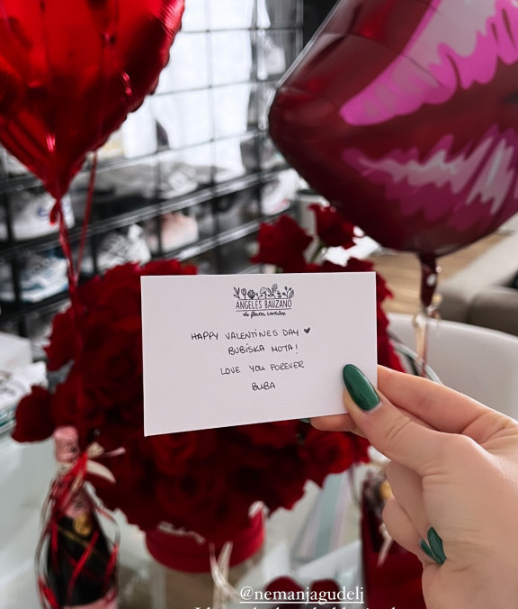 “Happy Valentine's day, bubiška moja! Love you forever. Buba”, poručio joj je suprug, otkrivajući posebne nadimke kojima zovu jedno drugo.