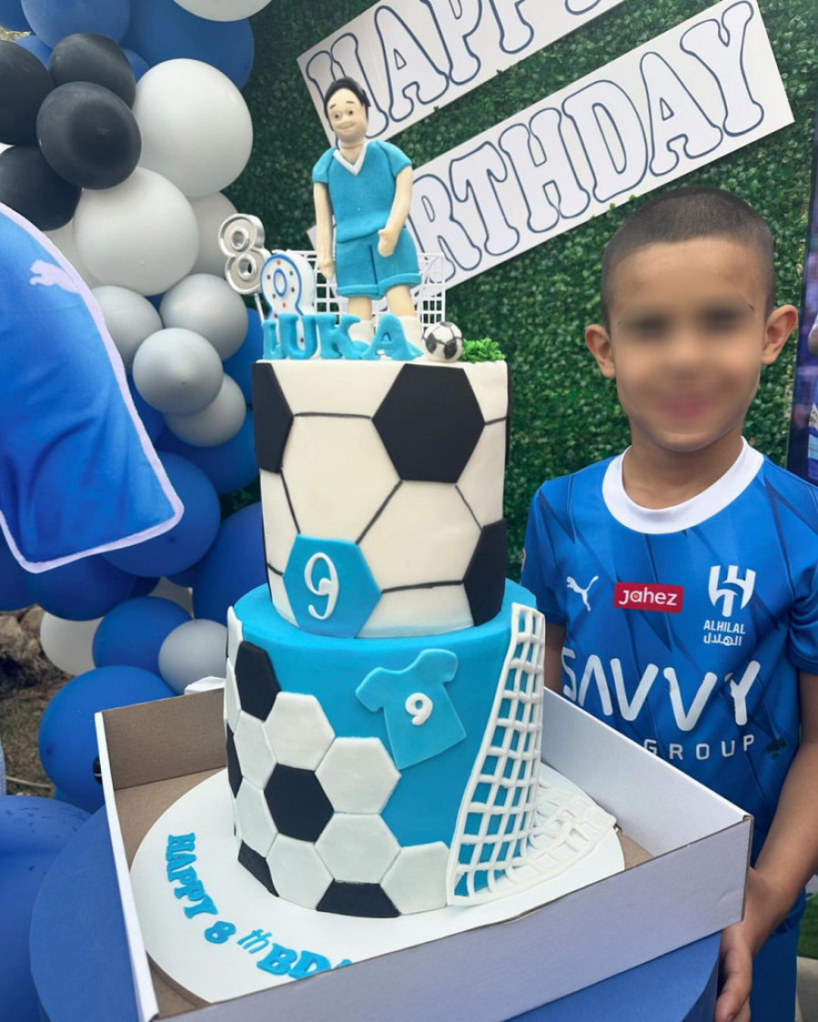 Ponosna majka Kristina objavila je fotografije sa proslave, na kojem je dominirala dvospratna torta sa motivom fudbalske lopte i fudbalerom od marcipana na vrhu.