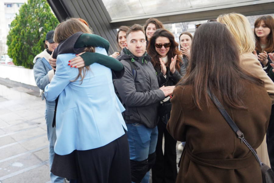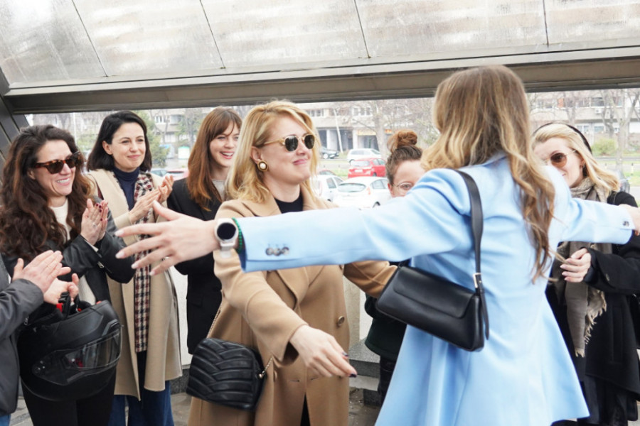 Ispred zgrade su je sačekale brojne koleginice koje su došle da joj pruže podršku.