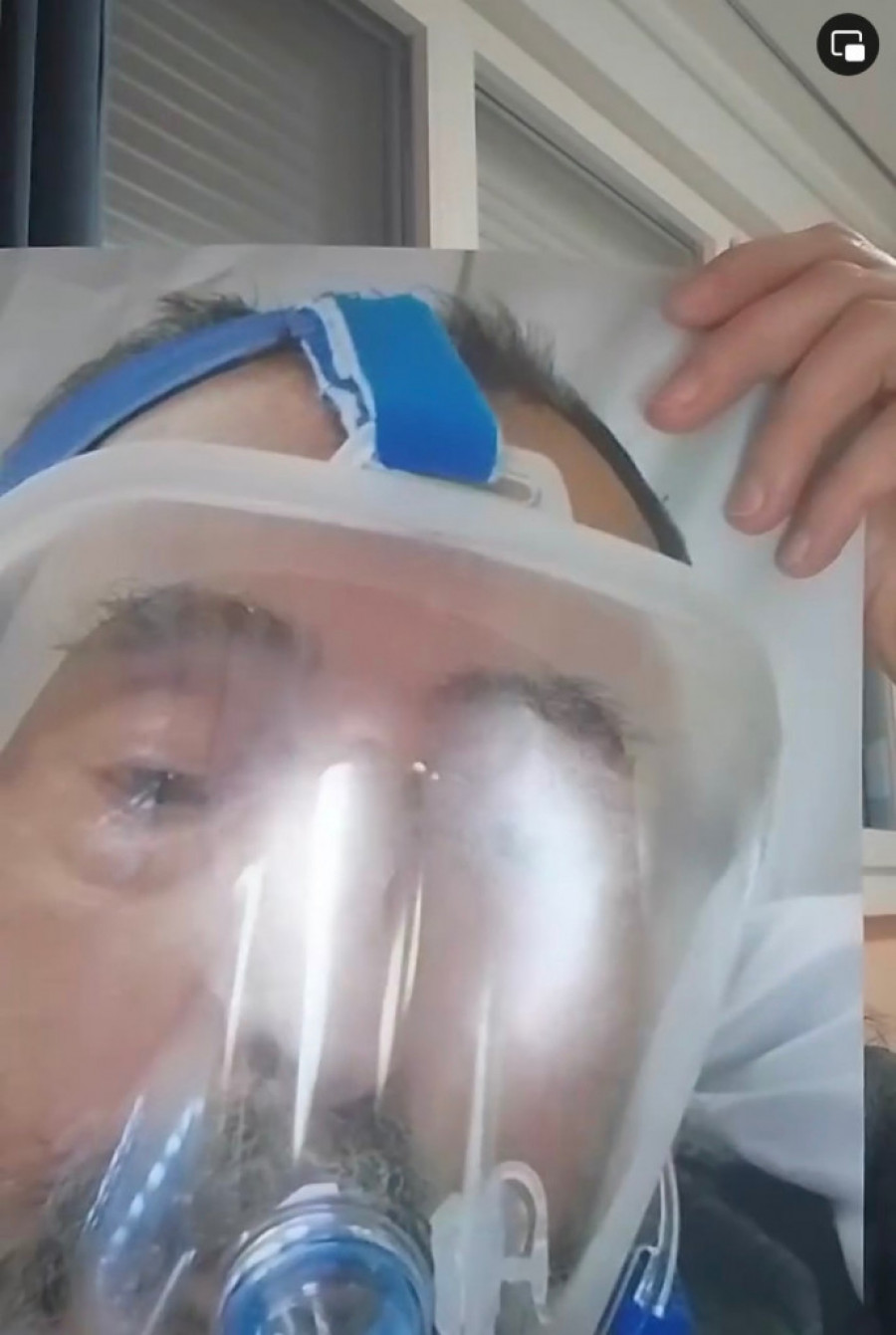 Želim da istaknem da je 16. avgusta sa tatinog telefona poslata ova potresna fotografija na kojoj se jasno vidi da je on pod kiseoničkom maskom, kacigom, jer on bez nje nije mogao samostalno da diše. Prilažem tu fotografiju.