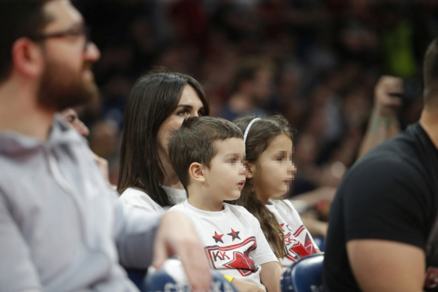 Dok je na terenu igrao Miloš Teodosić, na tribinama se našla njegova supruga Jelisaveta Orašanin sa ćerkom Petrom i sinom Bogdanom.