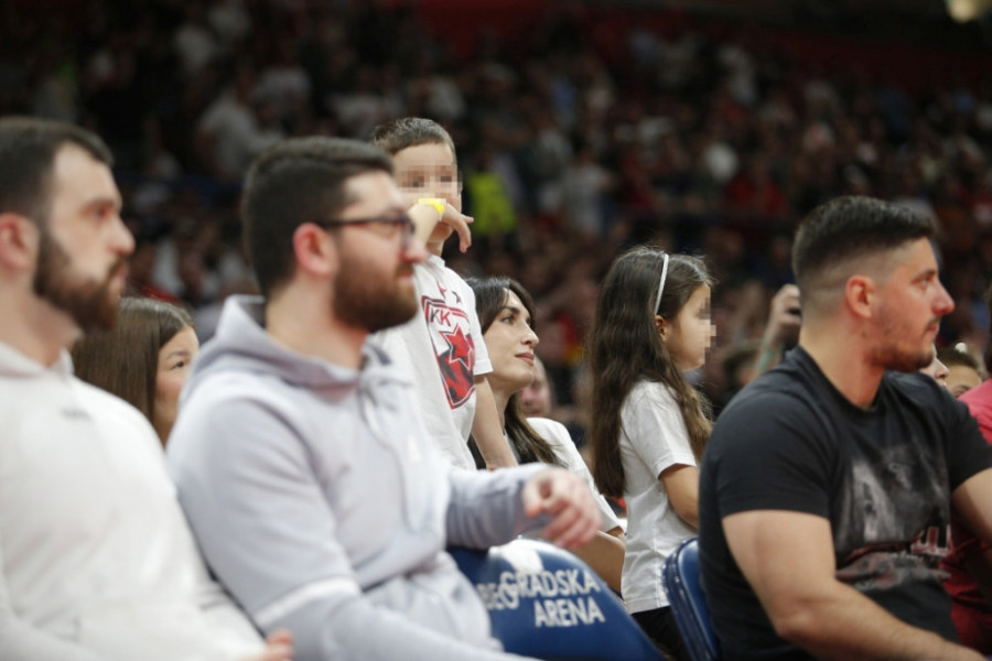 Jelisaveta je sa decom uslikana na utakmici, gde je bodrila supruga, dok su mališani nosili dresove Crvene zvezde, navijali za tatu i prisustvom ukrali svu pažnju publike.
