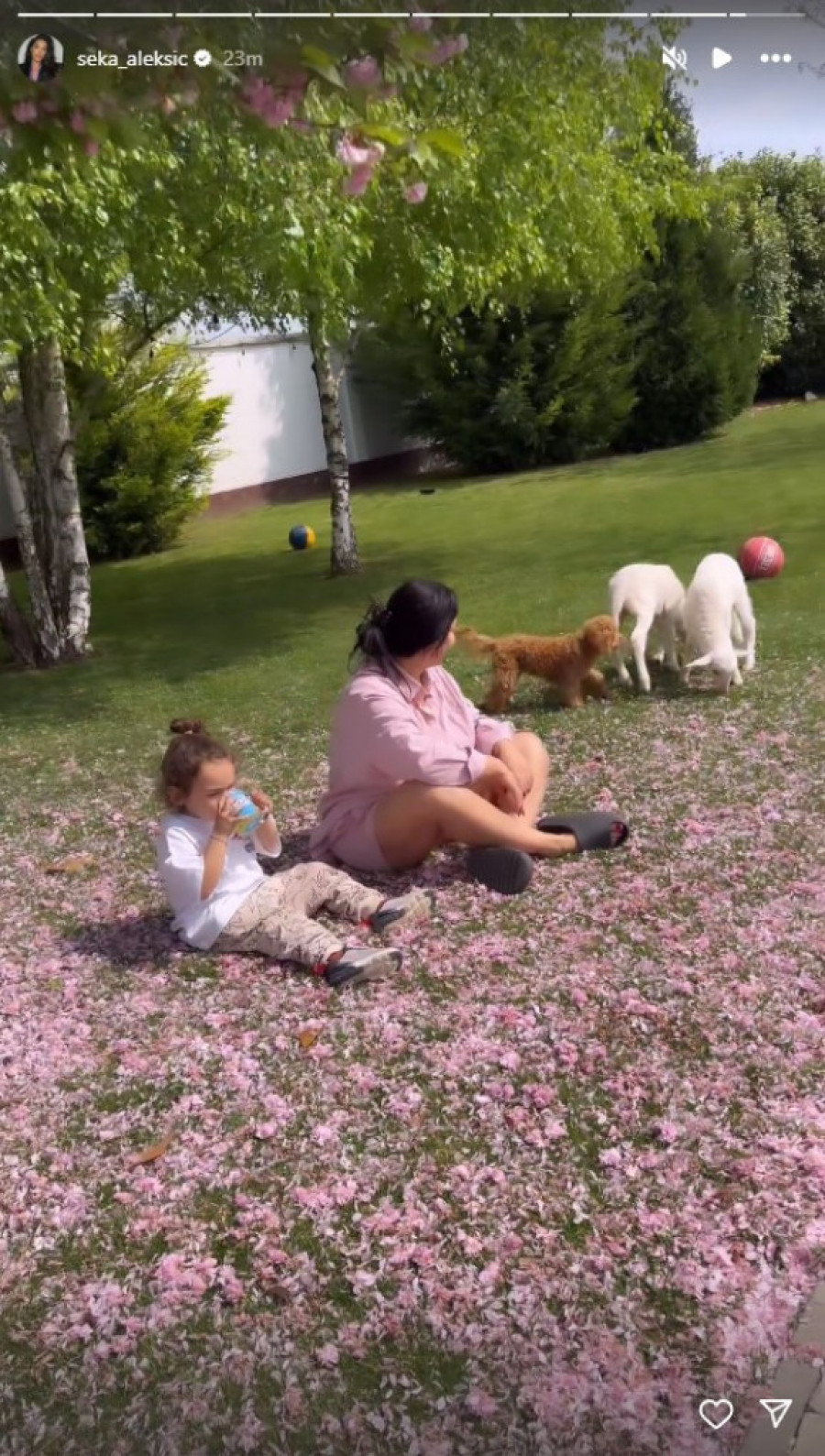 “Bože, kakva ljubav”, napisala je popularna pevačica uz pastoralne prizore. Jaganjci su veselo skakutali po travi, a osim ljubimca pudle i, naravno, Seke, pridošlicama su se obradovala i deca.