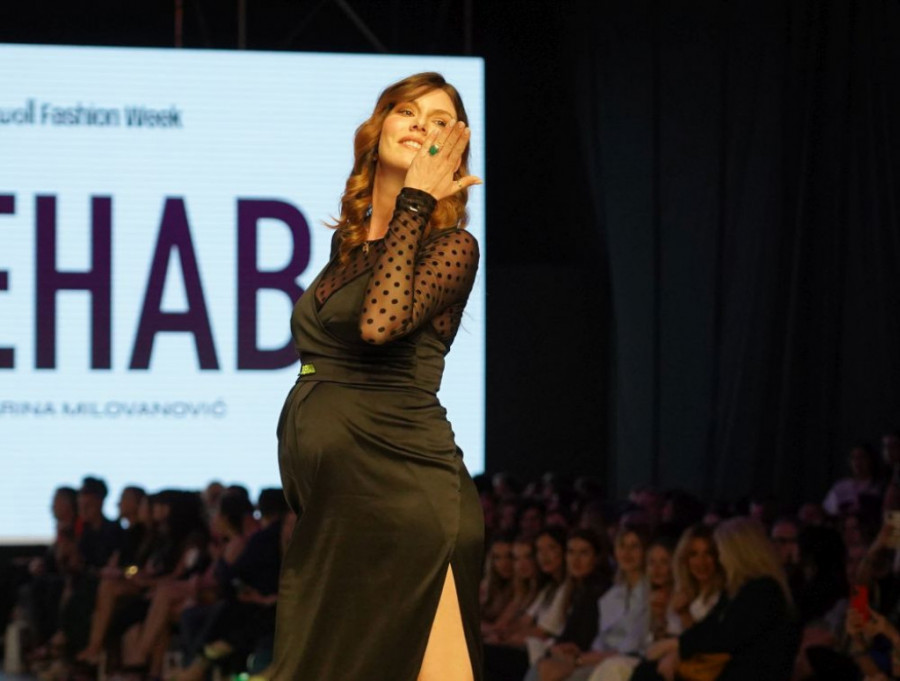Lepa glumica je prosto zračila i primetno uživala u ulozi manekenke. Plenila je i kreacijom i osmehom, slala poljupce, a prisutni su je nagradili ovacijama. Potpuno zasluženo.