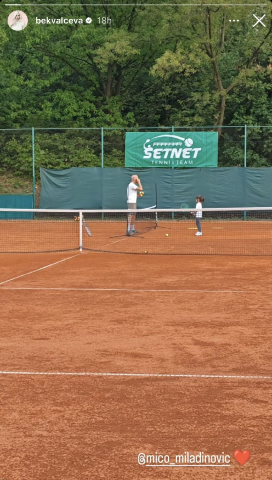 Mlađa ćerka Nataše Bekvalac čvrsto je držala reket i odlučno vraćala loptice treneru s druge strane mreže.
