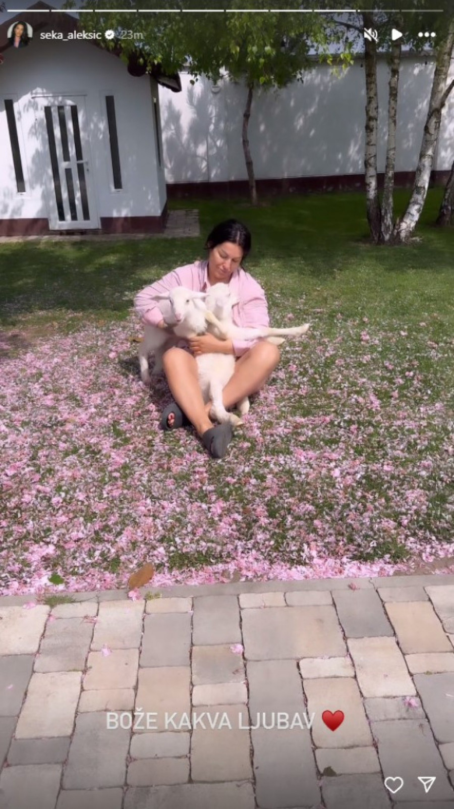 Popularna pevačica pokazala nam je i kako napreduju jaganjci. Zatekla ih je dok su se hranili. Lagano, bez žurbe, sa uživanjem. Kako i treba da bude.