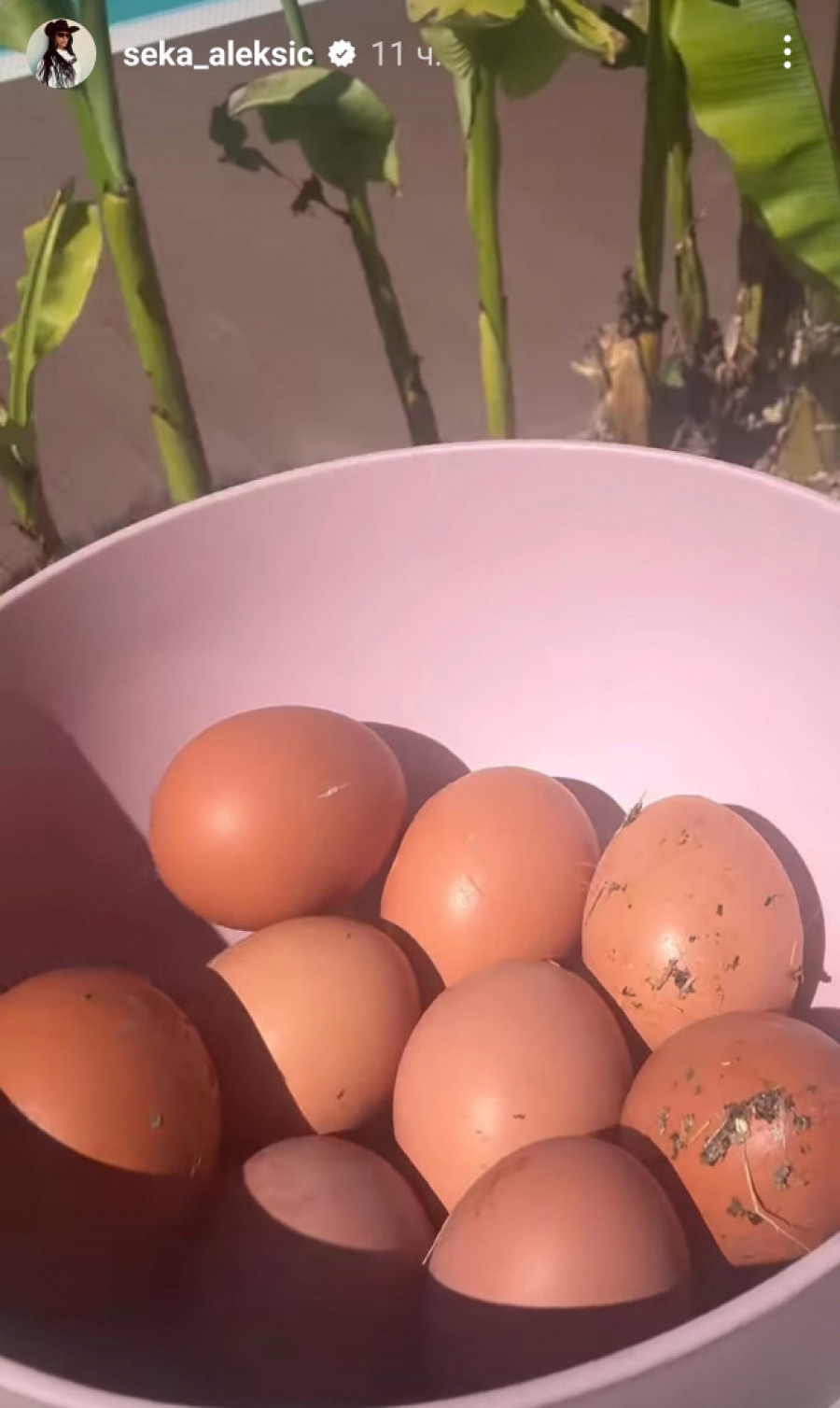 Seka za to ne mora da brine, budući da ima nekoliko kokošaka. Čak je na Insta storiju pokazala da ih je upravo posetila i pokupila svež „plen“ – domaća jaja.