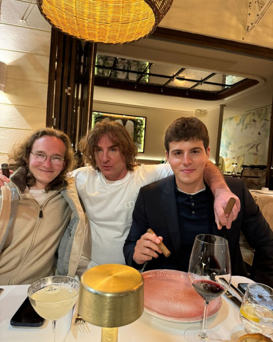 Željko je ponosno pozirao sa izabranicima svojih mlađih ćerki, uz odabrano vino i, naravno, tompuse.