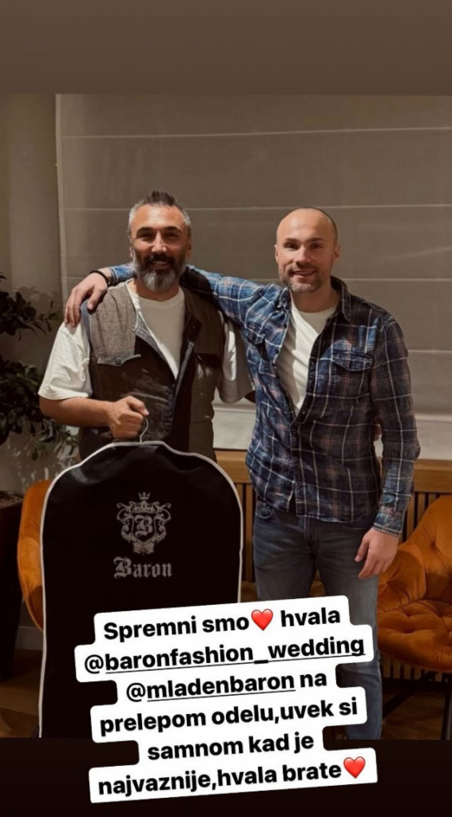 Spremno je i odelo, koje je specijalno za njega kreirao Mladen Milivojević Baron, što smo videli i u Sofrinom storiju.