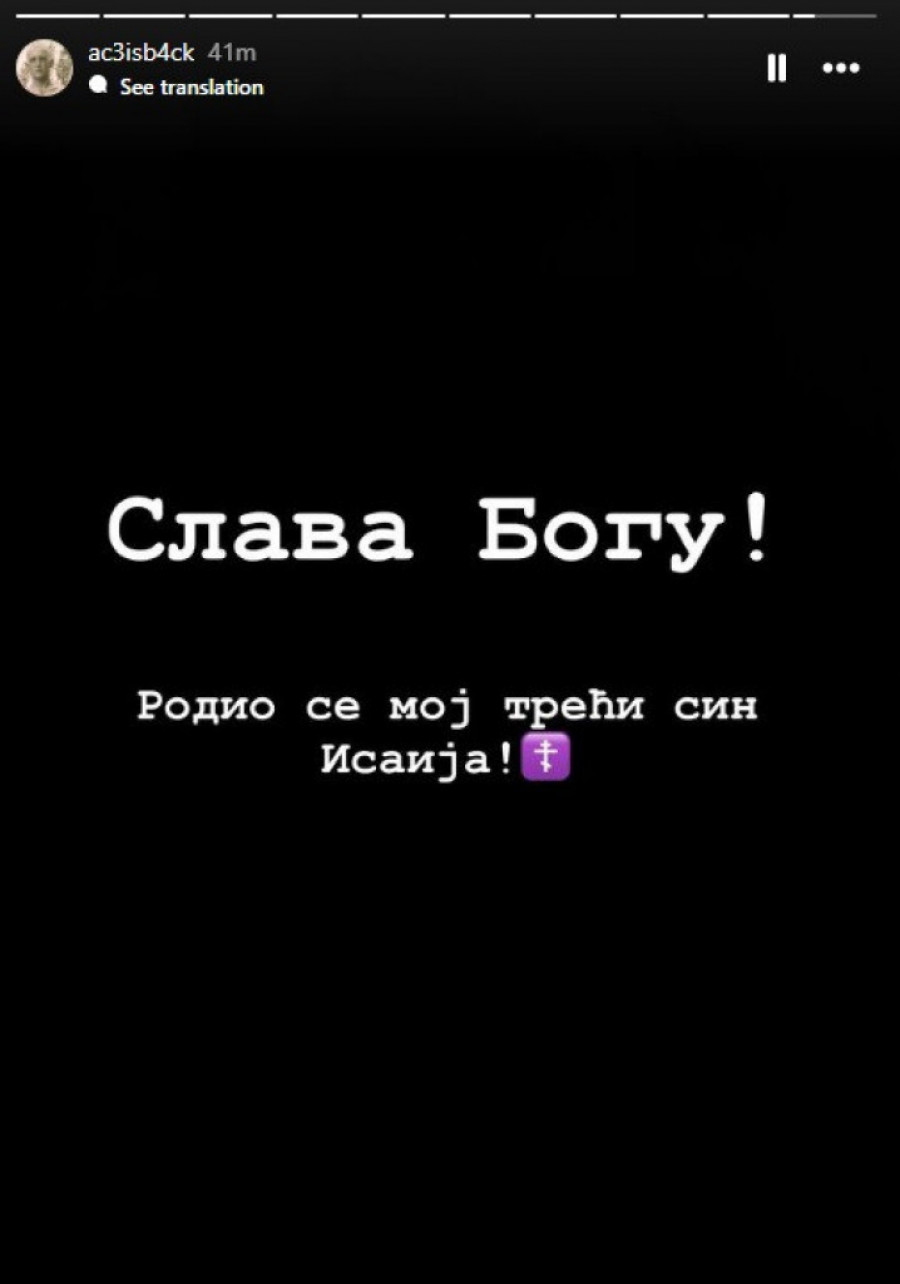 “Slava Bogu, rodio se i moj treći sin Isaija.”