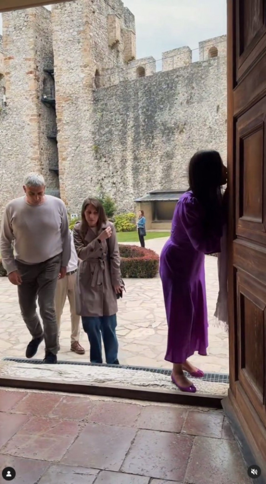 Tog dana nosila je dugu haljinu u boji u kojoj je često viđamo – kraljevskoj ljubičastoj. Ženstveni model je nešto šireg kroja, sa nabranim rukavima i velikom mašnom umesto kragne.