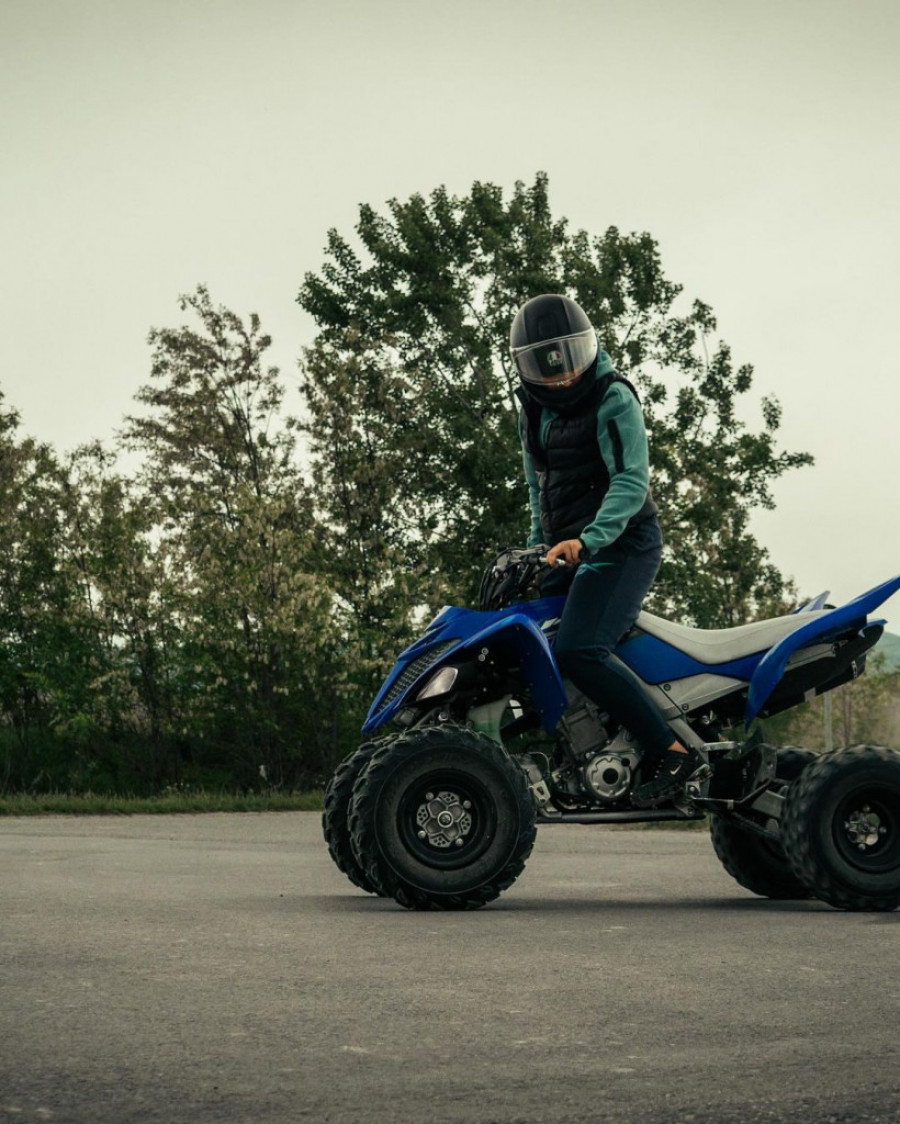 Tu je jedna objava, fotografija plavog kvada, kojim očigledno vrlo vešto upravlja. Ima i slike na motoru.