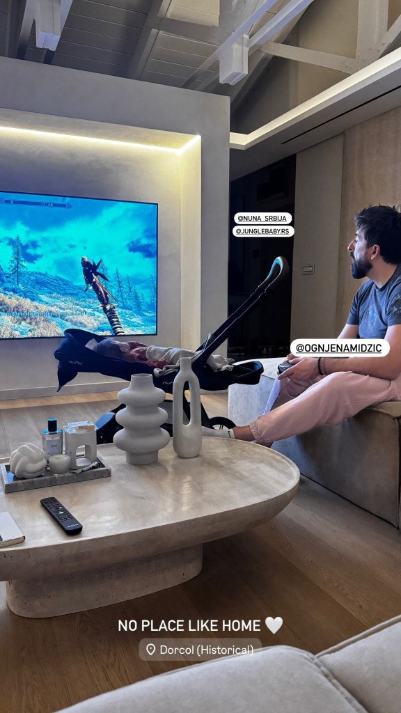 Stan je renoviran od poda do plafona i sada je oličenje luksuza. Mina je pre nekoliko dana podelila i prvu fotografiju iz nove dnevne sobe, na kojoj vidimo Ognjena kako drži sina u naručju. Dirljiv prizor prati samo jedna reč, “dom”.