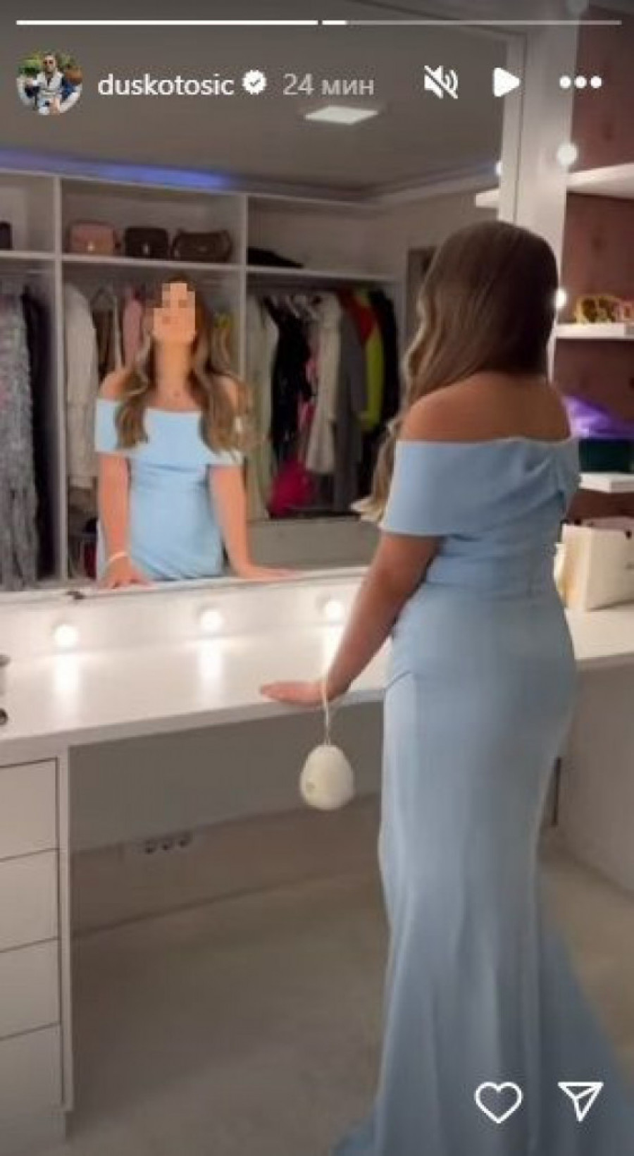 Nakon što je objavljena vest da je Jelena Karleuša prijavila Duška Tošića za nasilje u porodici, on se oglasio putem društvenih mreža tako što je objavio snimak ćerke u maminom garderoberu skockane od glave do pete za matursko veče.
