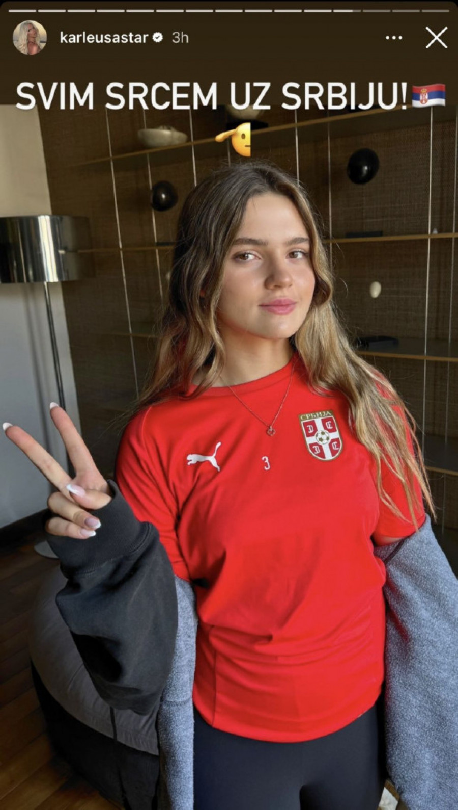 To je istakla i njena majka, Jelena Karleuša, koja je takođe objavila fotografiju mlađe ćerke u navijačkom raspoloženju.