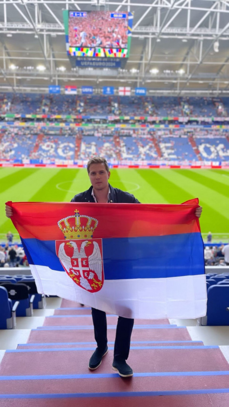 Među njima je i selektorov sin, koji je uoči utakmice sa Engleskom na stadionu ponosno raširio srpsku trobojku.