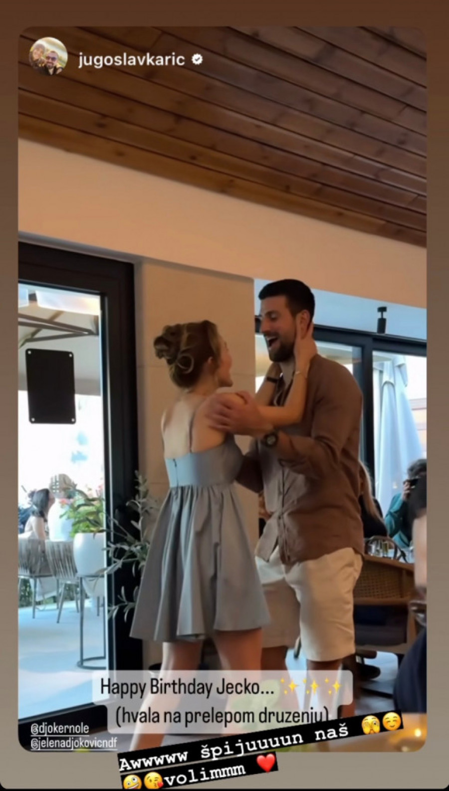 Na zabavi je bio i Jugoslav Karić, koji je zabeležio jedan romantičan momenat – Jelena i Novak u zagrljaju plešu uz baladu „Voli me još ovu noć” grupe „Denis & Denis”.