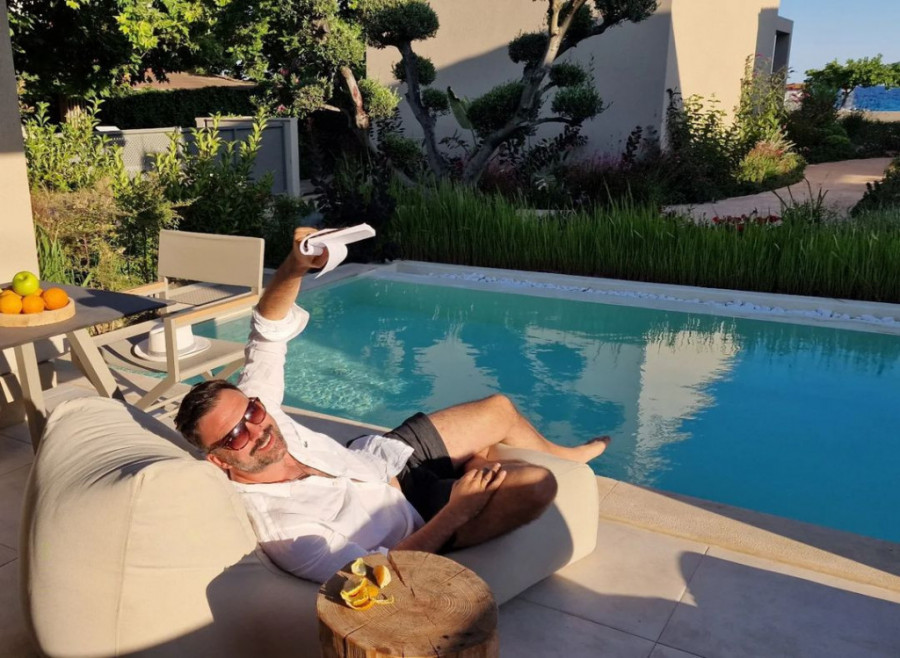 „Gledanje u sunce”, napisao je uz fotografiju na kojoj ga vidimo pored bazena, ali ne u hladu.